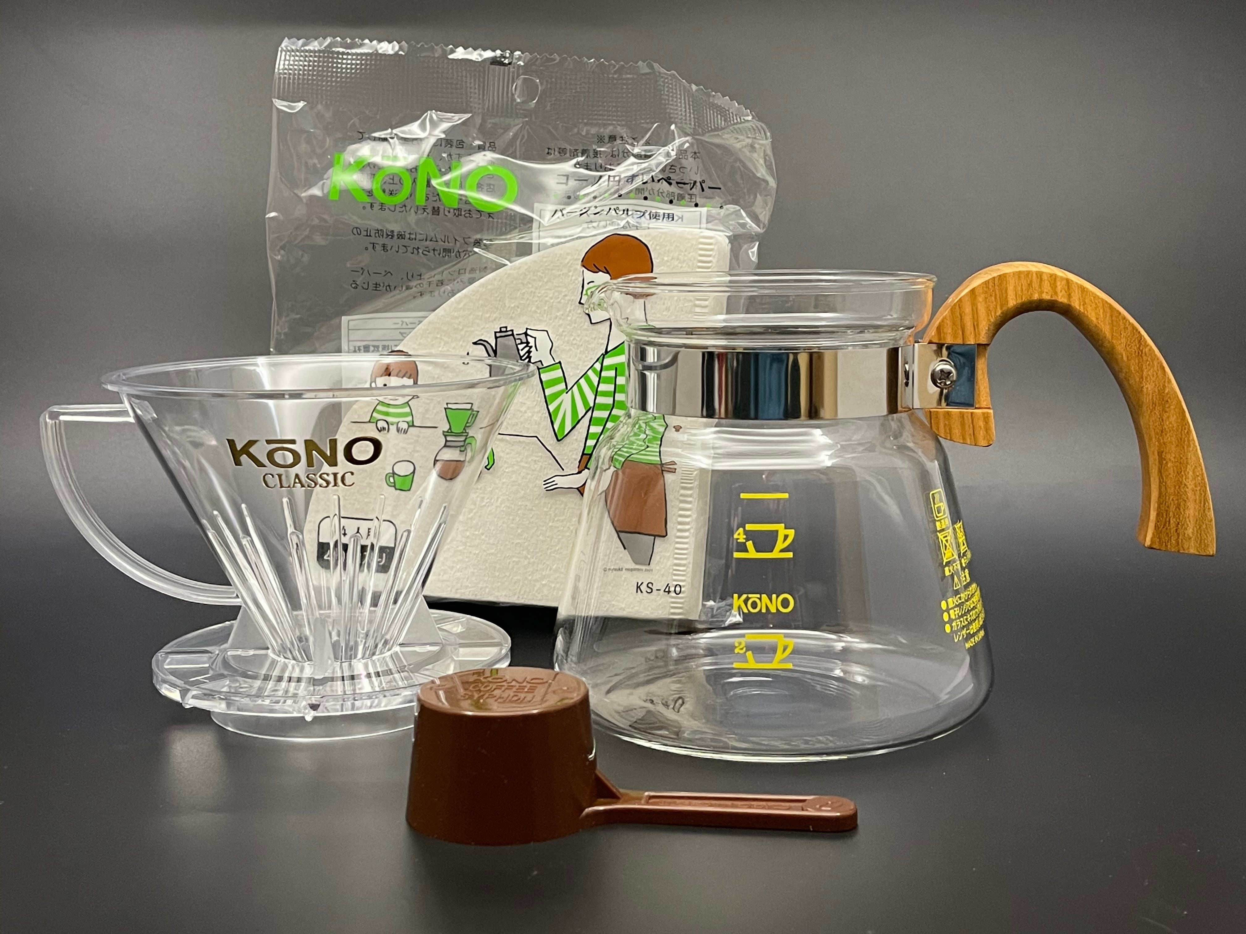 ペーパーの簡便さとコーヒー抽出に理想的な3枚ハギのネルの漉し袋のもつ長所を兼ね備えた「名門円錐フィルター」。5年の歳月を経て昭和48年に発売されて以来、瞬く間に喫茶店のプロのカウンターマンの間に広がり、現在ではコーヒー愛好家のあいだでも広く愛用されています。
