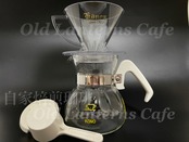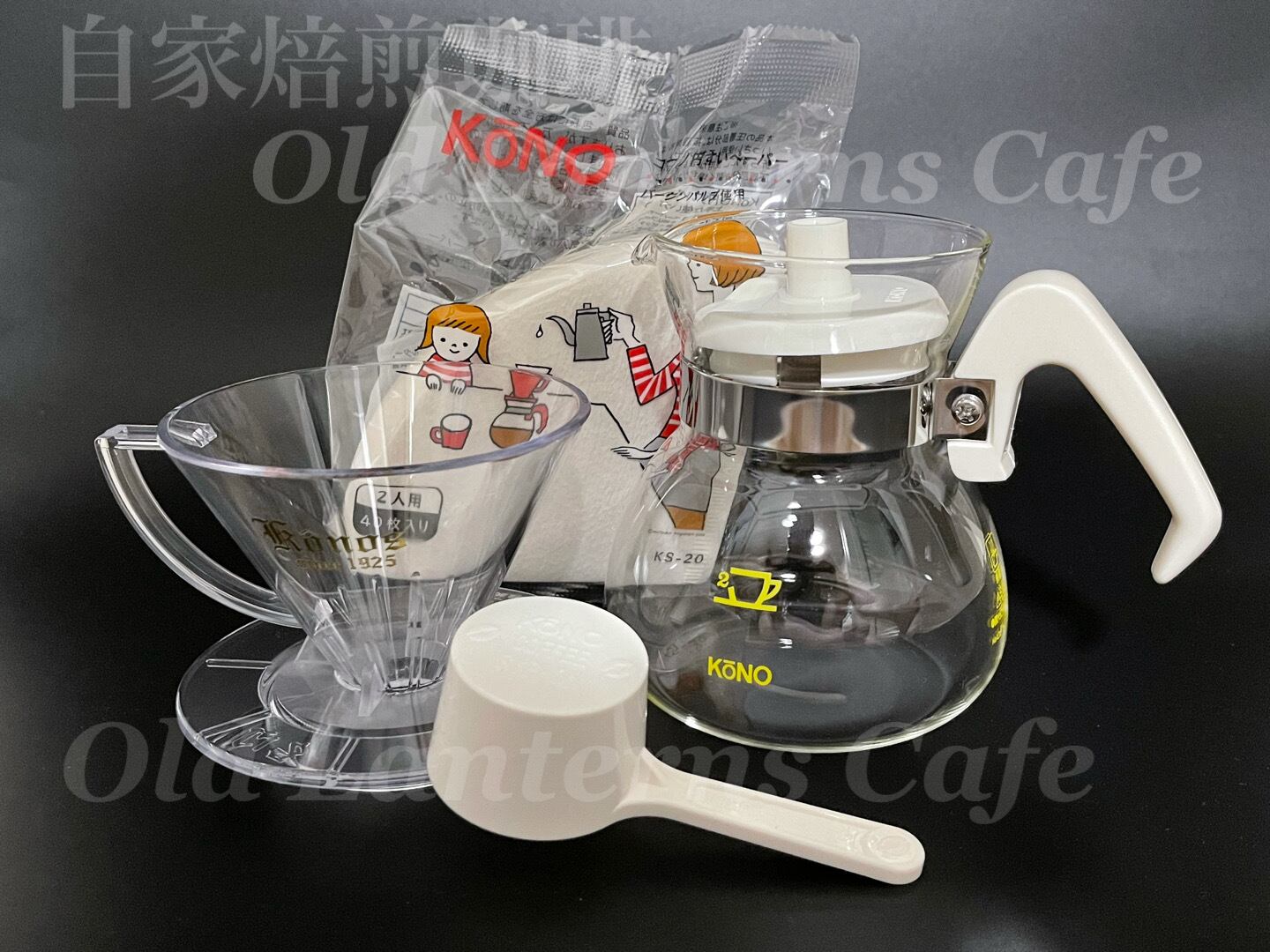 ホワイトカラーのグラスポットと計量カップ、円錐ペーパー40枚( KS-20)が付属した便利なセットです。