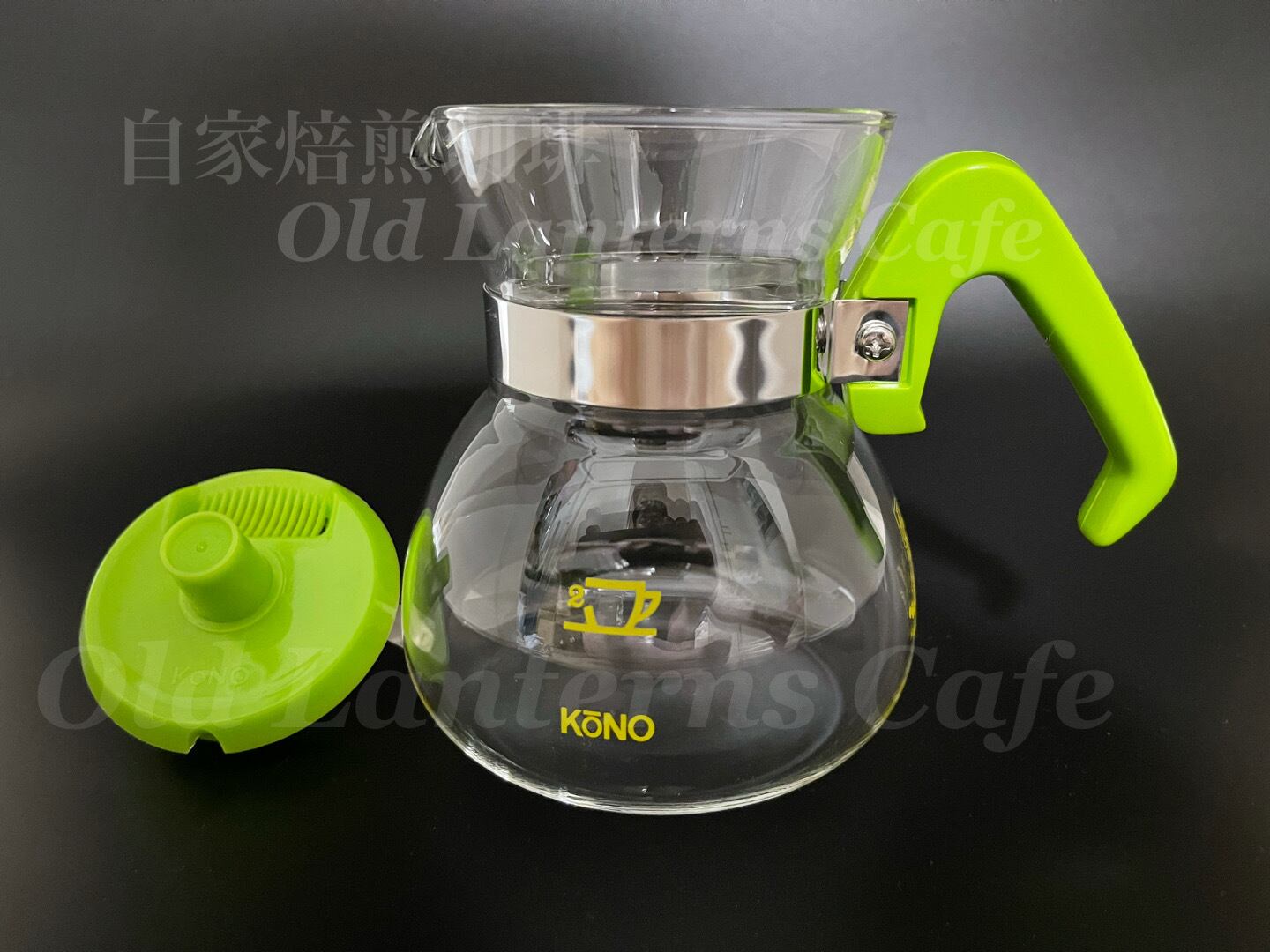 オシャレな形状したコーノ式耐熱グラスポット(フタ付)2人用 カラー:ライトグリーン